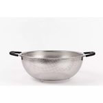 El colador Cuisinart® de 5 cuartos está hecho de malla dura de acero inoxidable. Cuenta con asas de agarre suave.