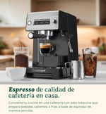 Conviértete en tu propio barista y disfruta de la experiencia de un café desde la comodidad de tu hogar con la cafetera Cuisinart® Espresso Bar™. Crea bebidas exclusivas para ti, con un depósito de agua extraíble y una bandeja de accesorios integrada para todos los elementos esenciales, la elaboración de la bebida perfecta nunca ha sido tan cómoda.