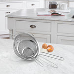 ¡No pueden faltar en tu cocina! Nuestro práctico set de 3 coladores con malla de acero inoxidable, te facilitan la preparación de recetas; ya sea en pequeñas tareas como tamizar unos deliciosos postres horneados, hasta colar profundamente una bebida o mezcla.